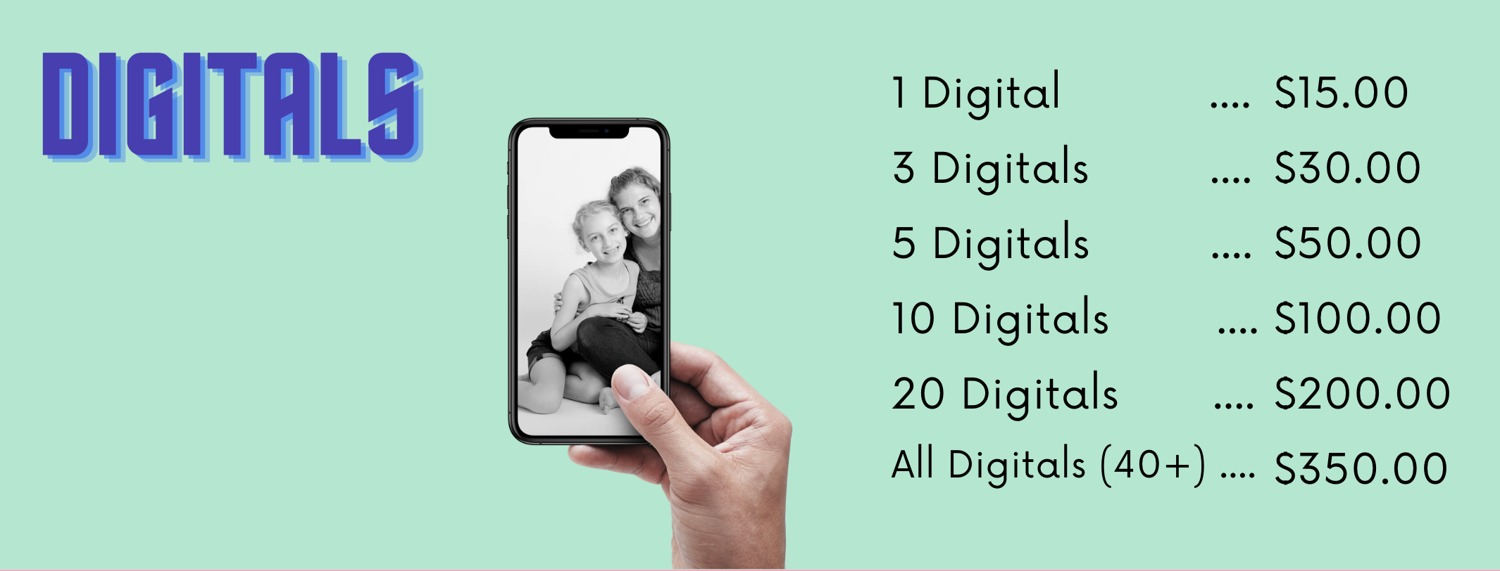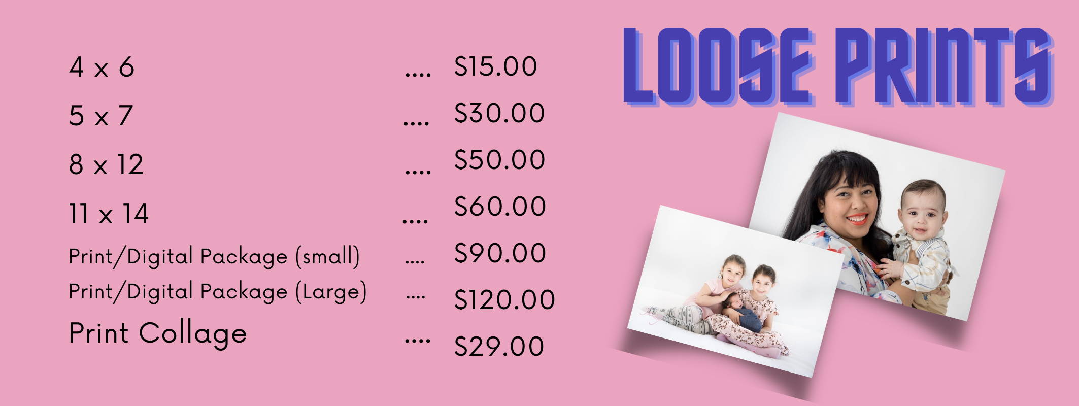 Remember that these prices are designed specifically for Preschool Mini sessions are are discounted from our usual prices - just for you!